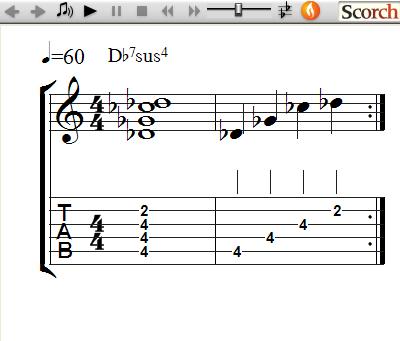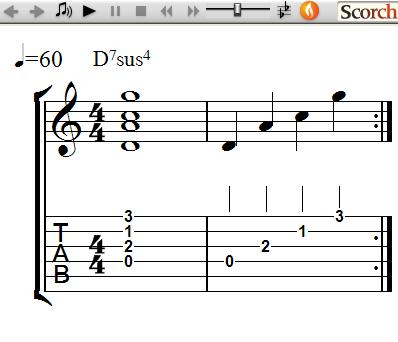 The following exercises use 3 Seven Sus4 chords each and show how to practice learning and changing between chords.