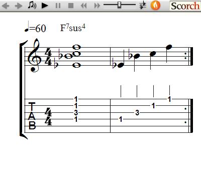 Here are the 7sus4 Chord Inversion Lessons, also sometimes called "Slash Chords" and written as C7sus4/G chord (Chord Symbol / Lowest Note in Bass). Includes another way to play Root Position 7sus4 Chords.