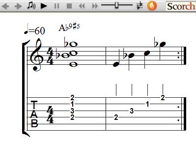 These chords are played near the NUT of the guitar in the 1st position. Chords that use open strings are known as Open Position chords (A, C, D, E & G). All chords are Root Position chords as the lowest note of each chord is the Root with the exception of Ab which has the 5th in the bass.