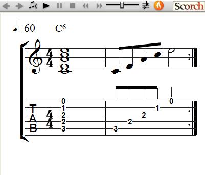 The following exercises use 3 Major 6 chords each and show how to practice learning and changing between chords.