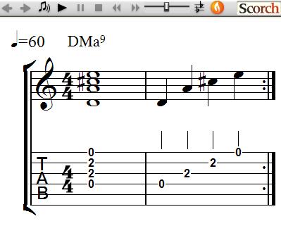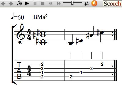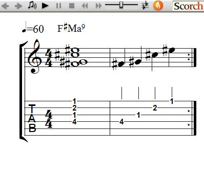 Here are the Ma9 Chord Voicing Lessons, which are another way to play Root Position Ma9 Chords off the 6th, 5th and 4th strings using moveable block form patterns. They are called Voicings since they only use 4 of the 5 notes of a Ma9 chord for a more open sound.