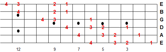Once you memorize this fingering pattern you can reuse it by moving up or down the fretboard. Whatever note you start on is the 1st note of the scale.