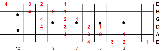 Once you memorize this fingering pattern you can reuse it by moving up or down the fretboard. Whatever note you start on is the 1st note of the scale.