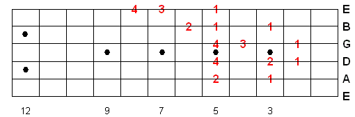 Once you memorize this fingering pattern you can reuse it by moving up or down the fretboard. Whatever note you start on is the 1st note of the scale.