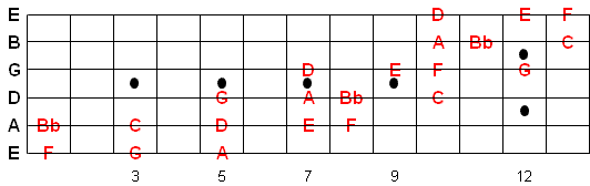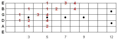 Once you memorize this fingering pattern you can reuse it by moving up or down the fretboard. Whatever note you start on is the 1st note of the scale.