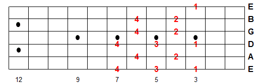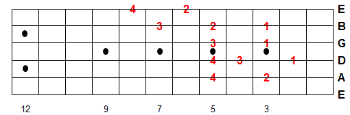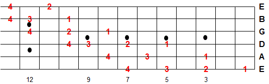 Once you memorize this fingering pattern you can reuse it by moving up or down the fretboard. Whatever note you start on is the 1st note of the scale.