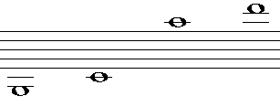 Notes may sit on a line (where the line passes through the note-head), in the space between two lines (where the note-head lies between two adjacent lines), in the space above the top line or on the space below the bottom line.